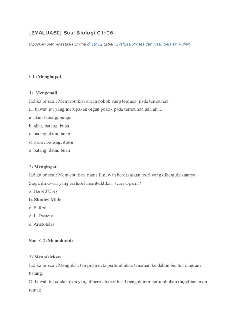 HERRYANTO November 22 pukul 4. Contoh soal matematika ialah merupakan suatu kumpulan soal pelajaran yang berguna untuk melatih anak dalam belajar yang sesuai dengan usia mereka. Kumpulan soal olimpiade ipa sd dan kunci jawabannya ayok sinau 1. Contoh Soal C1 Sampai C6 Ipa Sd Kelas 3 Kumpulan Soal Pelajaran 3 Jawaban Uts Evaluasi Nuri Rhamdhani Wijaya Academia Edu Contoh Soal Geografi C1 C6 Cute766 Contoh Soal C1 Sampai C6 Pelajaran Biologi Cara.