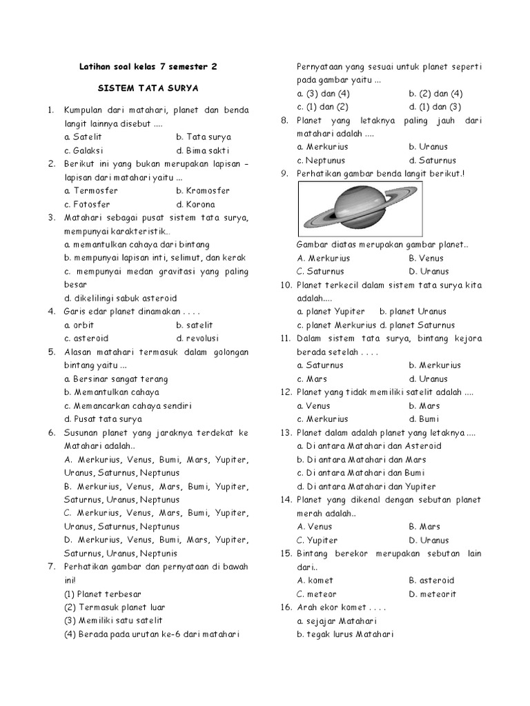 Contoh Soal Ipa Klas 7 Semester 2 Lapisan Bumi. Latihan Soal Ipa Tentang Tata Surya Kelas 7 Semester 2 from id.scribd.com