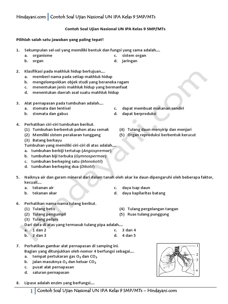 Contoh Soal Un Ipa Pernapasan Pada Hewan Dan Manusia. Soal UN Sistem Pernapasan IPA SMP Tahun 2014 No. Jika link tidak aktif silahkan beri tahu admin dengan cara komen di bawah.