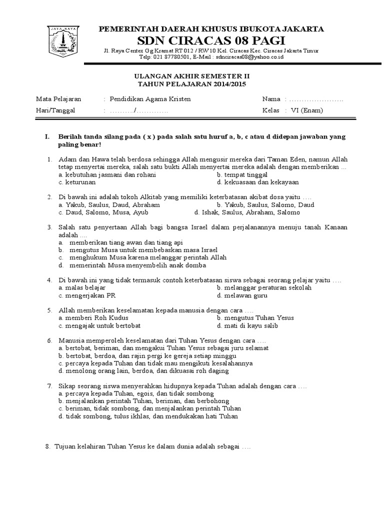 Soal Ujian Agama Kristen Kelas 9 from id.scribd.com