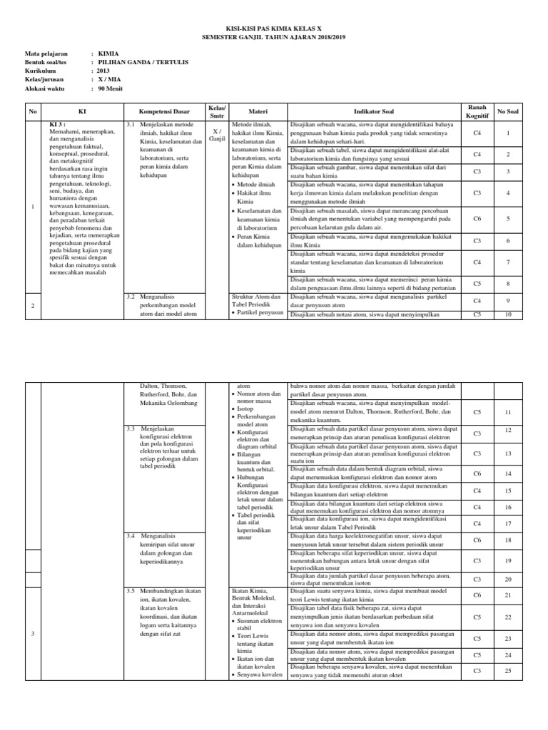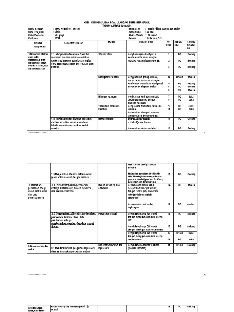 Kumpulan Kisi Kisi Soal Kimia Kelas X Semester 1. Link download kumpulan soal-soal HOTS Kimia Kelas X dilengkapi dengan kisi-kisi penulisan soal kunci jawaban pedoman penskoran Breaking News Jadwal Imsakiyah Ramadhan Tahun 2021 1442 H Seluruh Kota di. Kisi Kisi Soal Kimia Kelas X Kisi Kisi Soal Kimia Kelas 1 Kisi Kisi Soal Kimia Kelas X Kisi Kisi Pas Kimia Kelas 10 Tahun 2019 2020 Websiteedukasi Com Contoh Kisi Kisi Soal Pilihan Ganda Kurikulum 2013 Smk Guru Ilmu.