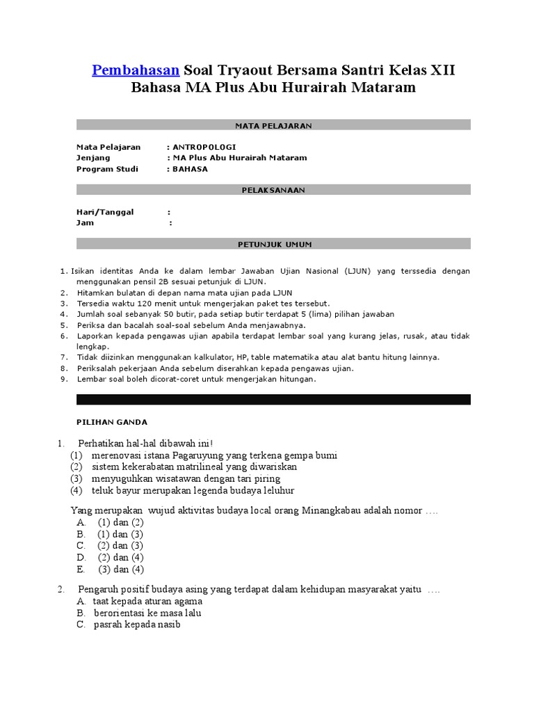Kumpulan Soal Antropologi Pdf. Kisi kisi dan kumpulan soal tes cpns 2019 lengkap dengan kunci jawaban bisa download gratis dan. Muhammad Nur Jamaluddin MNJ wwwmnjmyid PREDIKSI SOAL UJIAN AKHIR SEMESTER II TAHUN.