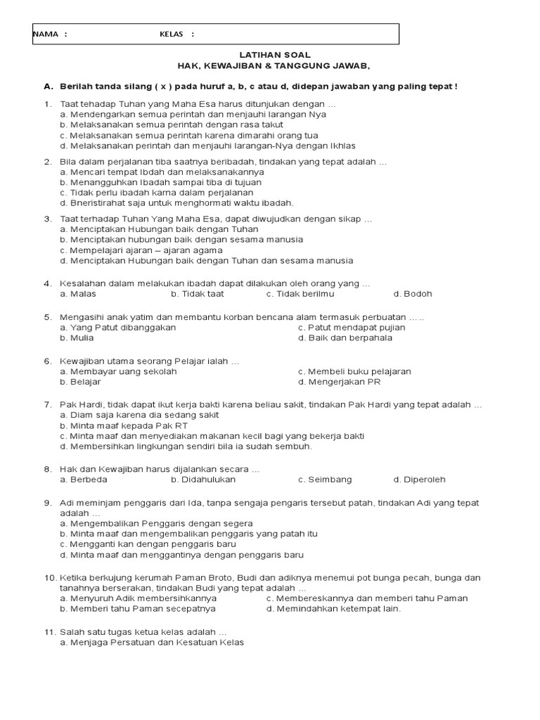 Latihan Soal Pkn Hak Kewajiban Tanggung Jawab from id.scribd.com
