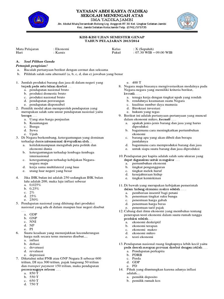 Guru sd smp sma soal pilihan ganda ekonomi tentang. Berikut di bawah ini contoh soal UTS ekonomi kelas xii semester 1 beserta jawabannya untuk siswa SMASederajat. PG ekonomi bab ke-6 merupakan lanjutan Contoh Soal Ekonomi Kelas X Semester 2 Kurikulum 2013 Beserta Jawabannya bab ke-5 soal nomor 41-50 dan.