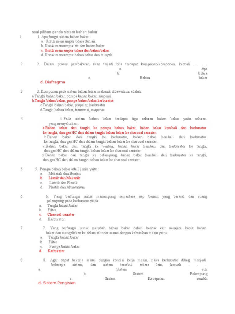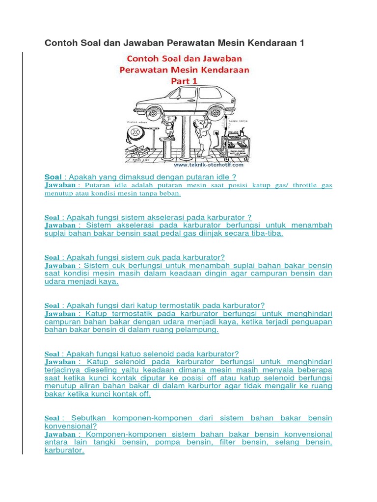 Kumpulan Soal Karburator. Kunci jawaban semua kode soal snmptn 2012 kemampuan tpa. Kumpulan soal sitem bahan bakar bensin efi dan karburator.