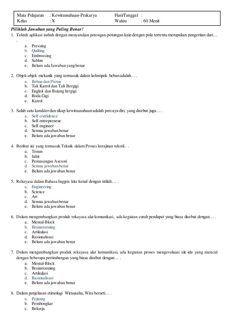 Soal Dan Jawaban Kewirausahaan Prakarya Smk X from www.slideshare.net