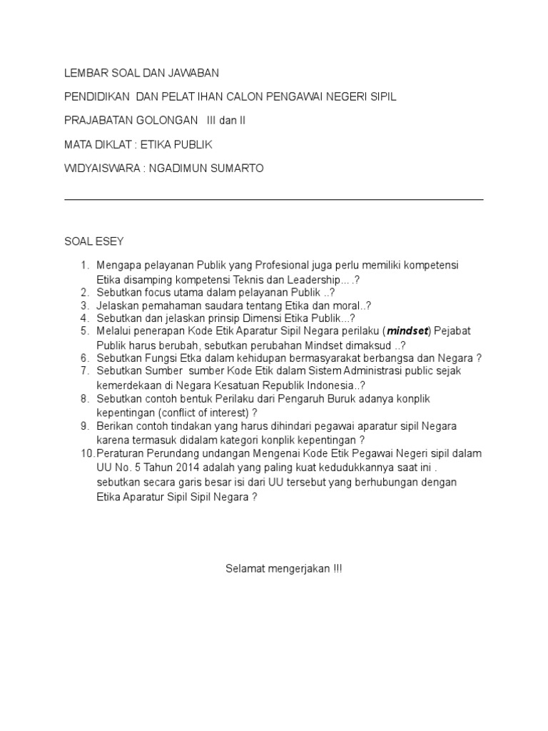 Lembar Soal Dan Jawaban Etika Publik Prajab from id.scribd.com