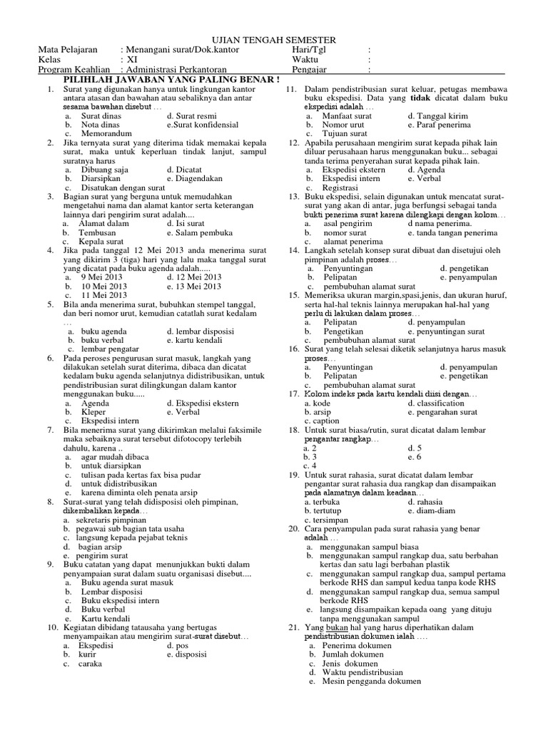 Kumpulan Soal Menangani Surat Dokumen Kantor. Tugas penerimaan surat dilakukan dengan cara. Meminta persetujuan kepada pimpinan atau kepala 7.