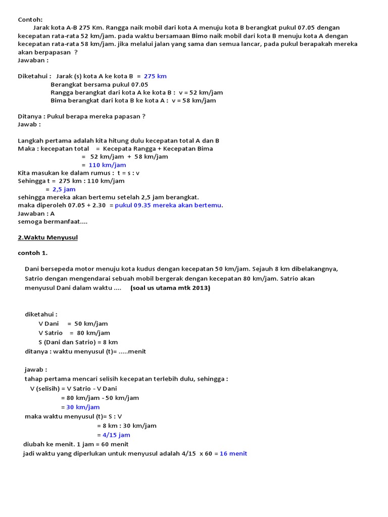 Kumpulan Soal Berpapasan dan Menyusul. Soal Jarak Kecepatan dan Waktu Tempuh plus Kunci Jawaban dan Pembahasan. Setelah memahami rumus dan contoh menghitung berpapasan. Mencari Waktu W J.