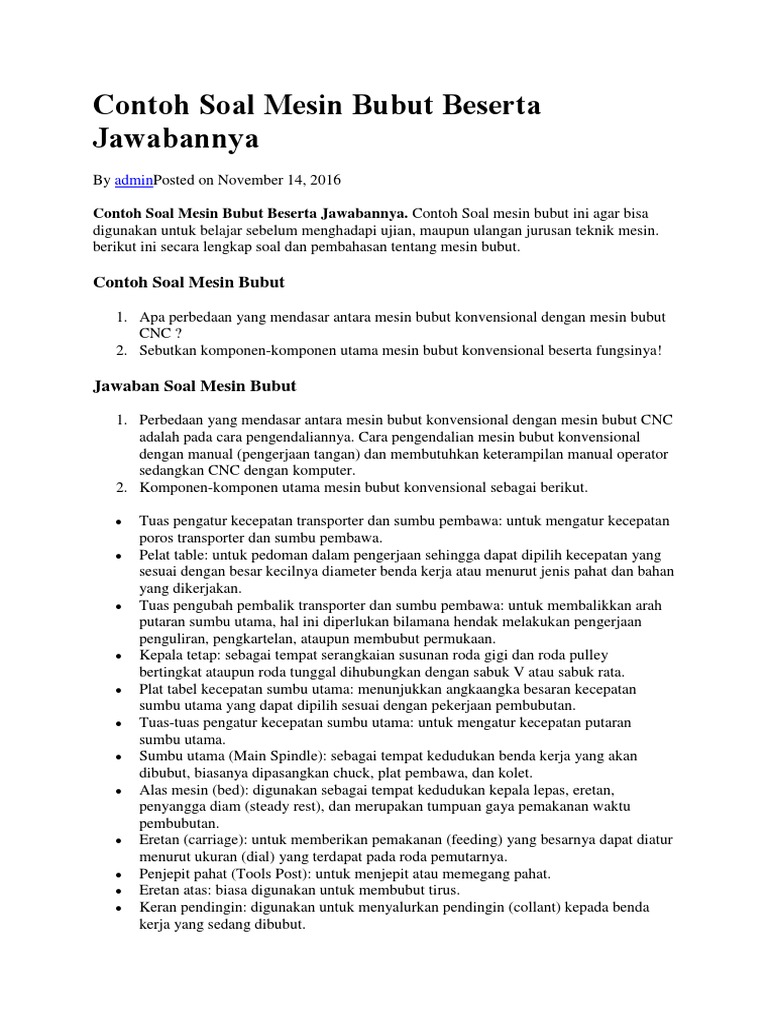 Contoh Soal Mesin Bubut Dan Jawabannya Contoh Soal Terbaru from barucontohsoal.blogspot.com