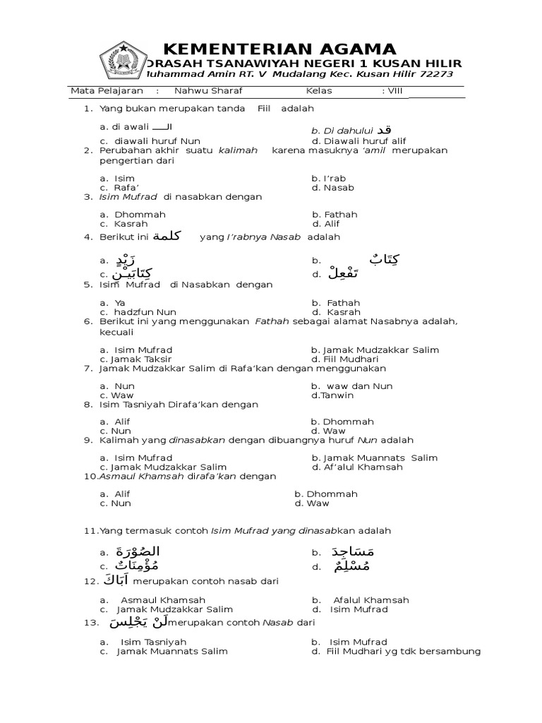 Soal nahwu shorof v. PANITIA PERLOMBAAN HARI SANTRI NASIONAL MTs-MA AL-ADZKAR. On selasa november 28th 2017 by madesu.