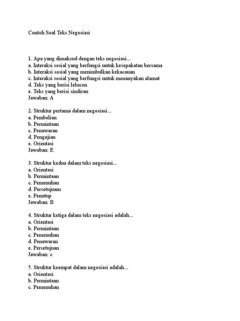Terdapat 30 contoh soal pilihan ganda dan 10 soal esay berkaitan dengan materi Teks Negosiasi pelajaran Bahasa Indonesia kelas 10X semester 2 genap yang bisa adik-adik sekalian pelajari sekaligus sebagai rujukan dalam menjawab tugas dari. Kata ganti orang ketiga jamak adalah. Contoh soal teks negosiasi 1.