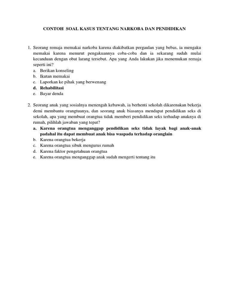 Soal Narkoba - Tentunya dengan Soal Narkoba yang kami sampikan ini akan bisa membuat anda bisa mengerti dan memahami Soal Narkoba yang kami sampikan untuk anda semua. Contoh soal tentang zat adiktif dan psikotropika pilihan ganda essay cinta. Contoh soal pilihan ganda tentang narkoba. Istilah narcotics memiliki arti.