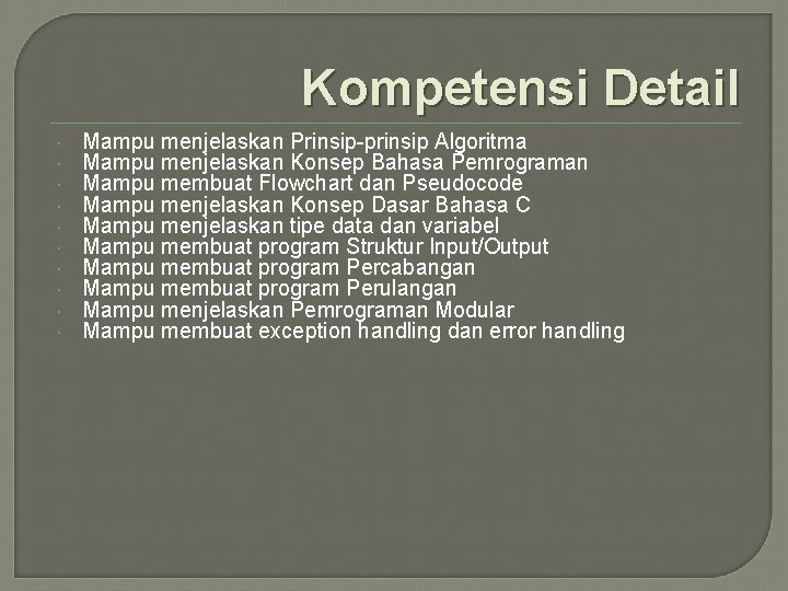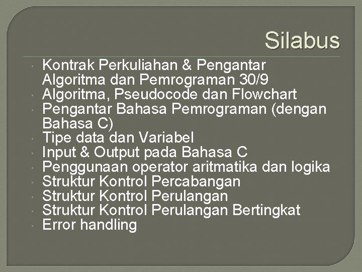 Disertai dengan berbagai contoh program yang mudah untuk dipahami. Selain itu banyak bahasa pemrograman populer seperti PHP dan Java menggunakan sintaks dasar yang mirip bahasa C. Notasi Sigma Secara umum pengertian notasi sigma adalah sebagai berikut.