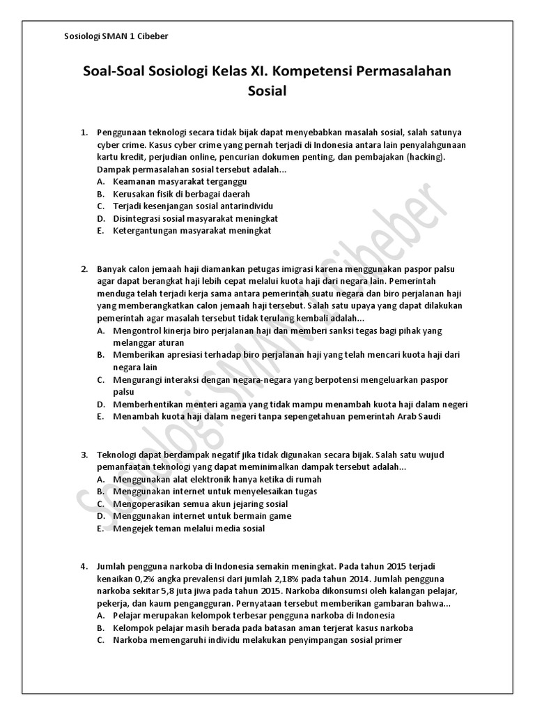 Sosiologi 38 Soal Konflik Sosial Lengkap Jawaban Latihan Soal Pilihan Ganda Bab Konflik Sosial 1. Kalau murid IPA akan bertarung melawan soal Biologi pada jadwal UN yang telah ditentukan maka kamu sebagai murid IPS akan berhadapan dengan soal-soal Sosiologi. Soal ununbk sosiologi dan kunci jawaban lengkap dengan pembahasan tahun 20192020 admin persembahkan untuk. Fungsi dan peran sosiologi kurikulum 2013 baca juga 1.