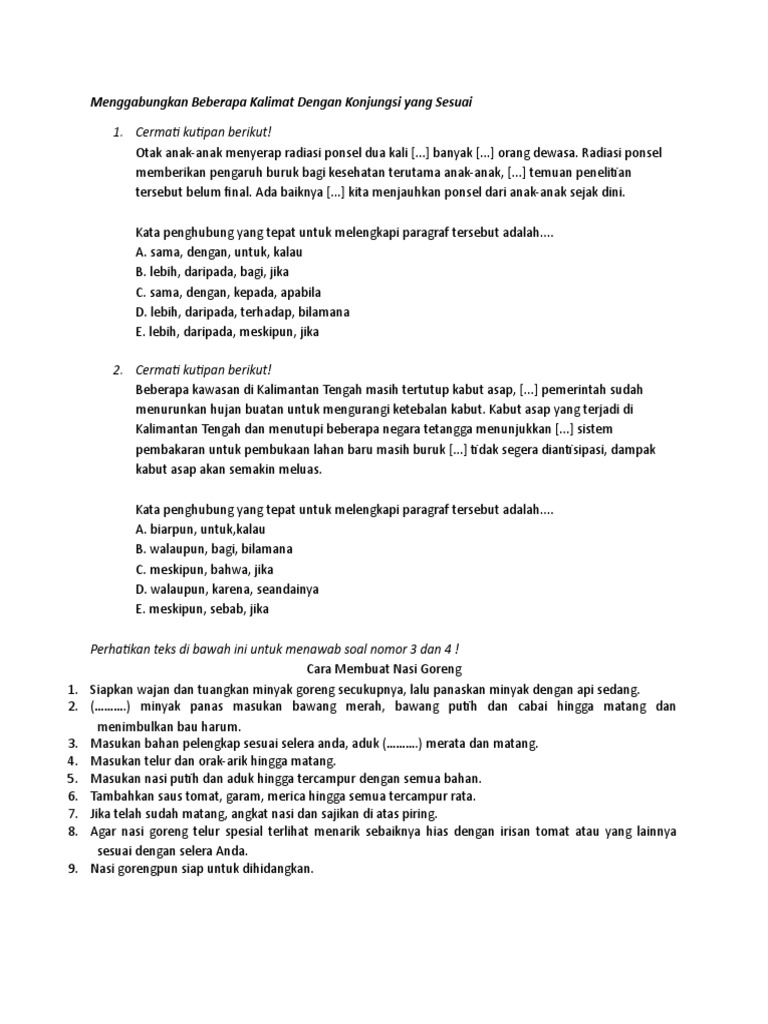 Indonesia merupakan paru-paru dunia kedua yang memiliki hutan-hutan lebat memberikan banyak oksigen. Contoh Soal Mengisi Konjungsi dalam Kalimat 1. Contoh soal bahasa indonesia tentang konjungsi dan jawaban. Download soal nya di sini.