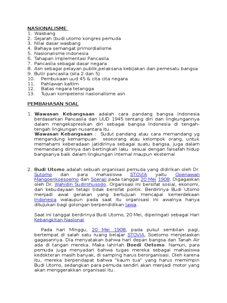 50 Soal Tes CPNS Nasionalisme 2020 - Halo kakak kakak yang sedang mengikuti ujian tes CPNS kali ini kita akan membagikan soal soal tes CPNS Nasionalisme 2020. Masyarakat pribumi belum tertarik terhadap pendidikan. Contoh Soal Twk Nasionalisme 30 Sep 2020 Posting Komentar Contoh soal nasionalisme twk skd dan pembahasannya berdasarkan permenpan rb nomor 23 tahun 2019 dengan memahami materi nasionalisme diharapkan kita mampu mewujudkan kepentingan nasional melalui cita cita dan tujuan yang sama dengan tetap mempertahankan identitas nasional.