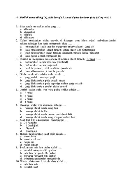 Download Soal UasUkk Pai Smk Kelas 1011 Semester 2 Tahun 2018. Fiqih dan Usul Fiqih. Shalat yang jika kamu kerjakan mendapat pahala dan jika ditinggalkan tidak mendapat dosa.