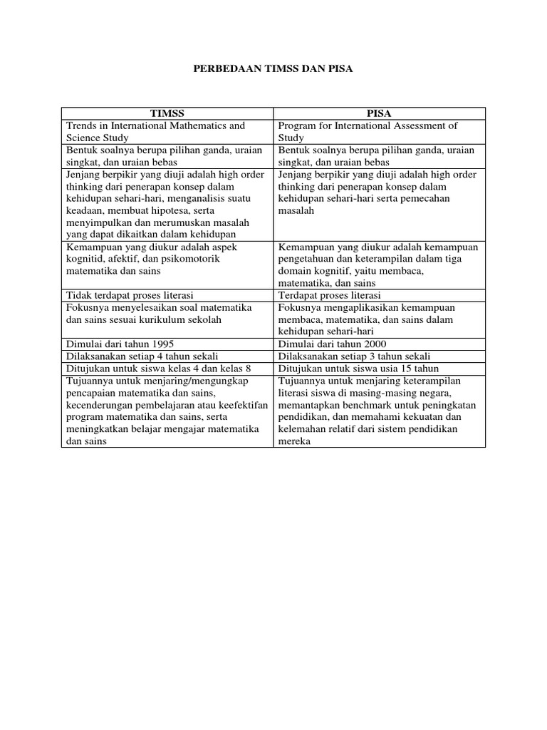 Soal UN SMA dan Jawaban Pangkat dan Bentuk Akar. File ini berisi contoh-contoh soal TIMSS. Download PDF Kumpulan Soal HOTS Model PISA atau TIMSS Literasi Matematika January 14 2019 Add Comment Edit K umpulan Soal HOTS PISA dan TIMMS beriktu ini bisa diujikan setidaknya untuk memperkanalkan kepada anak didik kita bagaimana tipe sola yang digunakan PISA atau TIMSS dalam mengukur kemampuan anak-anak.