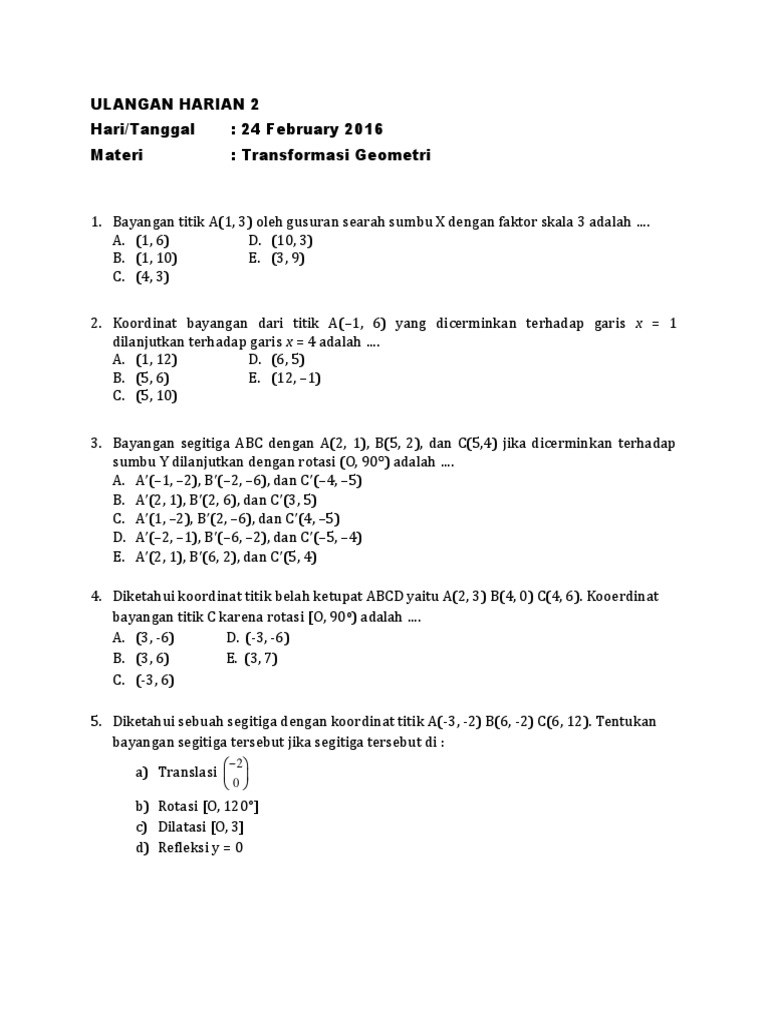 Kumpulan soal transformasi geometri doc Transformasi Geometri. Soal dan pembahasan transformasi geometri rotasi. Hal ini menggunakan sifat transformasi geometri rotasi.