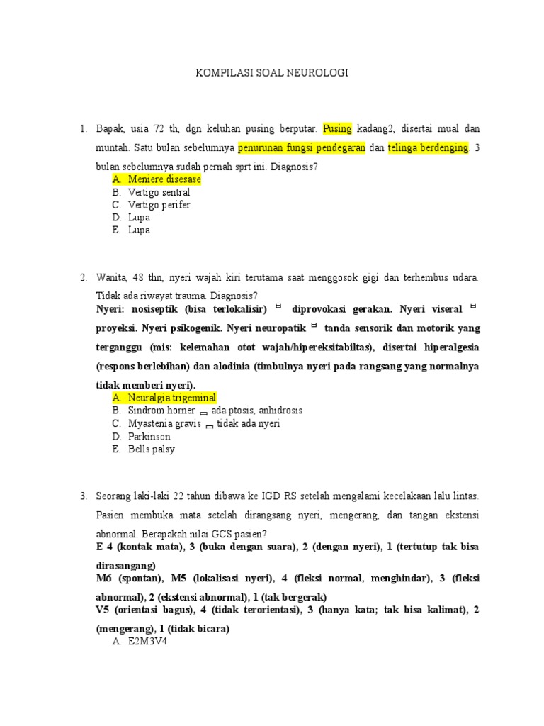 Soal Ukdi -- Saraf Soal UKDI Kulit Gambaran radiologi astrositoma Ujian Final Blok Neuropsikiatri Unhalu 2010 Neuro Soal OTORE soal UKDI PSIKIATRI Soal Histologi Kelas A SOAL NEUROLOGI Kumpulan Soal Neurologi.