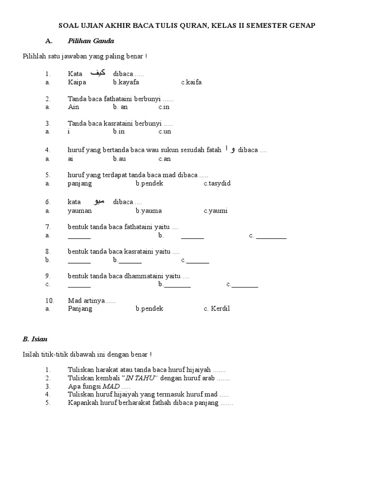 Soal uas btq bta kelas 1 2 3 mi semester 1 ganjil th.