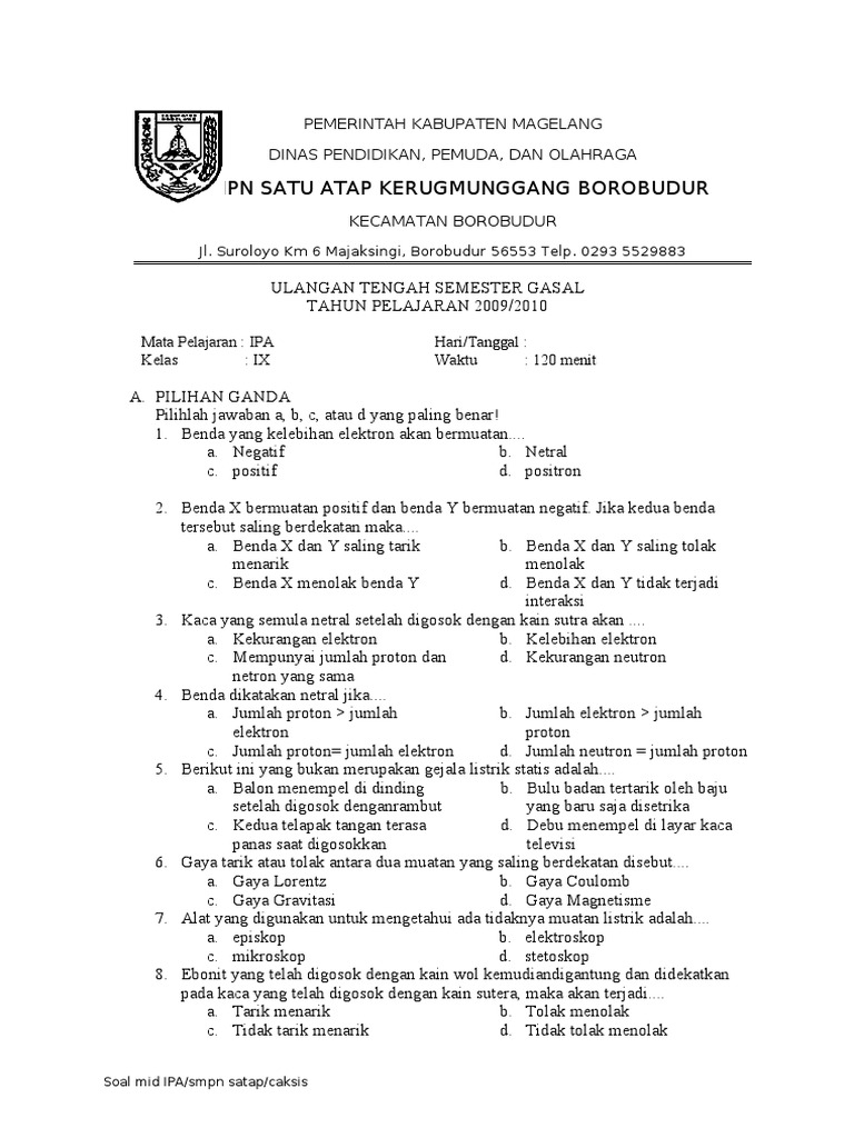 Soal PTS UTS ini berisi kumpulan soal semester 2 untuk Kelas 7 8 9 SMP MTs Kurikulum 2013 K13 tahun 2021. Soal essay ipa kelas 9 semester 1 dan kunci jawaban. Apabila terdapat ketidaksesuaian pada contoh soal USUSBN IPA Kelas 9 SMPMTs Kurikulum 2013 diatas mohon maklum adanya karena admin hanya berbagi soal latihan Ujian Sekolah bertujuan untuk menjadikannya sebagai.
