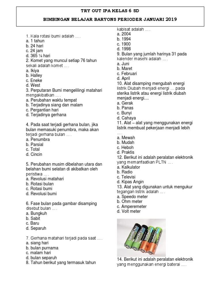 Dapatkan soal latihan ulangan uts mid ipa kelas 6 semester 1 ganjil soal ulangan ini terdiri. 50 Questions By Tuaja_pawan Last updated. Terima kaish atas kunjungannya. 02 Apr 19 0458 PM SD kelas 6 - IPA - Tryout Ujian Nasional.