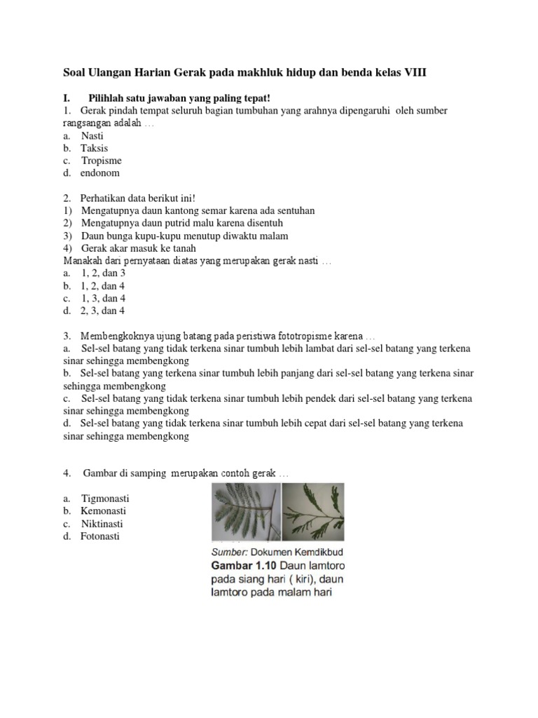 Cermati gerakan pada tumbuhan berikut. Pembuatan_soal_HOTSdocx - Pembuatan soal HOTS Nama Erlin Permana Windiastuti M Pd Kelas 8 KD 31 Menganalisis gerak makhluk hidup sistem gerak pada Indikator Indikator Soal Ranah No Soa l Butir Soal Kunci Jawaban 311. Faktor di bawah ini yang tidak memilih laju fotosintesis yaitu. Gerak tubuh dan berpindah tempat sebagai respon terhadap.