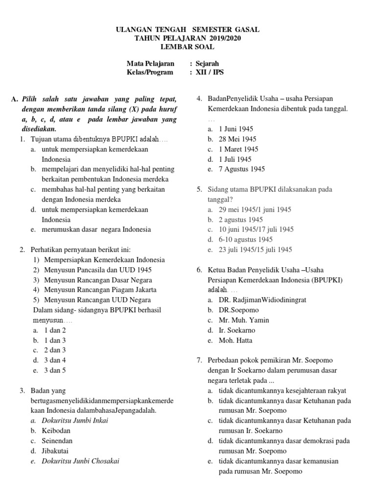 Soal Ips Kelas 8 Tentang Usaha Persiapan Kemerdekaan Indonesia. Proklamasi kemerdekaan di lakukan di. Soal Essay Sejarah Kelas Xi Ips Semester 1.