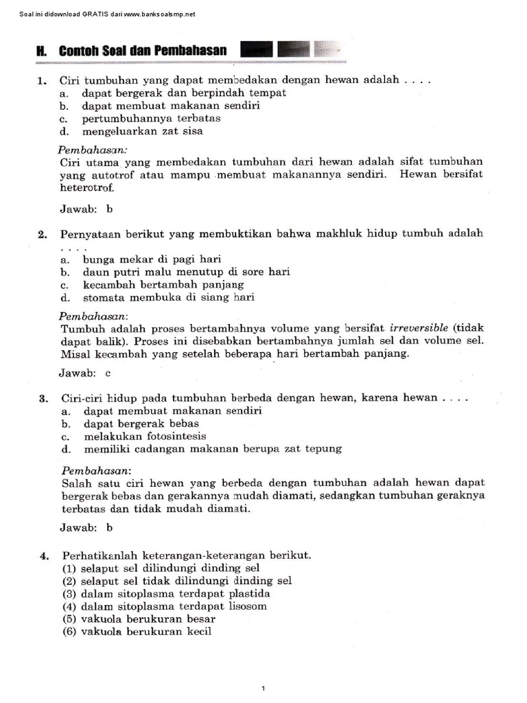 Berikut ini kakak admin bagikan Soal IPA Kelas 6 Bab 1 Ciri-ciri Khusus Makhluk Hidup dan Lingkungannya. Latihan Soal IPA Kelas 7 Materi Ciri-ciri Makhluk Hidup DRAFT 7th grade 4 times Science 65 average accuracy 4 days ago ipalupi0719_12567. Ciri-ciri makhluk hidup ini juga dijadikan sebagai dasar untuk klasifikasi mahluk hidup agar. Soal USBN SD Mata Pelajaran IPA Materi Ciri-ciri Makhluk Hidup dan Pengelompokkannya By Admin October 16 2020 Post a Comment Halo Sahabat BSB pada postingan kali ini akan dibahas soal US Ujian Sekolah SD mata pelajaran IPA.