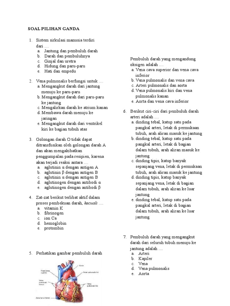Pilihan Ganda Berilah tanda silang X pada jawaban yang paling tepat. Penyakit Acquired ImmunoDeficiency Syndrome ataulebih. Berikut dibagikan contoh soal IPA SMP materi Sistem Peredaran Darah ManusiaContoh soal ini menjadi referensi belajar peserta didik. 75 99 Soal Sistem Peredaran Darah Pilihan Ganda dan Pembahasannya 76.