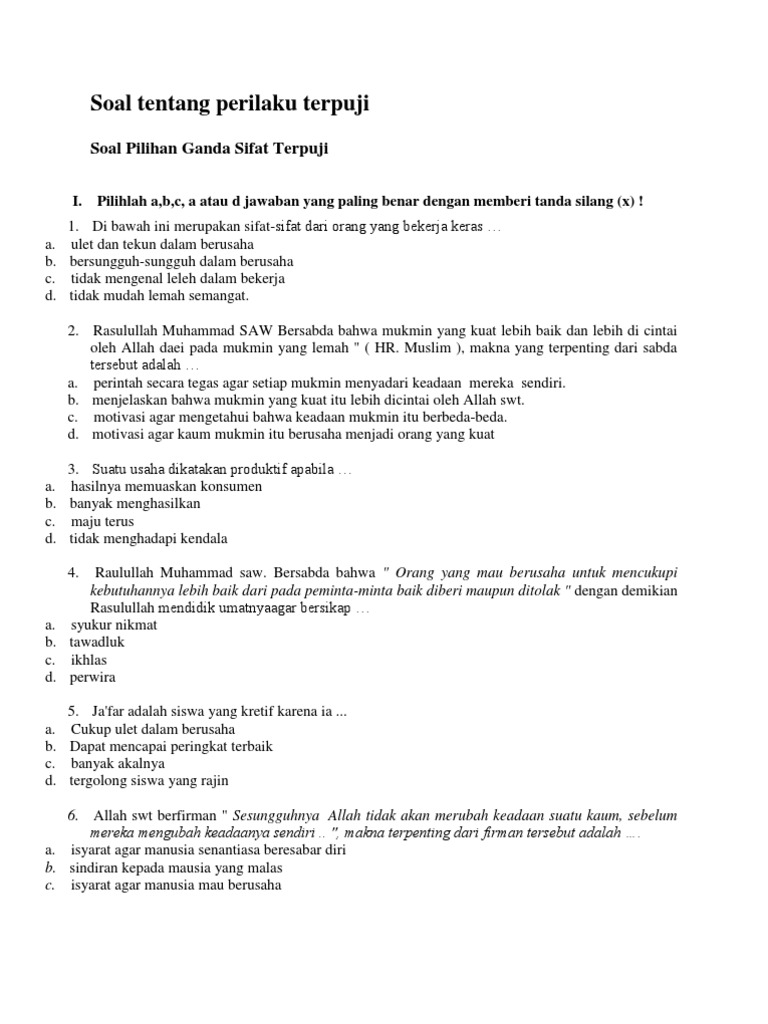 Soal Tentang Perilaku Terpuji Kelas 8. Tetapi anda dapat menemukan jawabannya di materi yang sebelumnya sudah saya share. Berilah tanda silang X pada jawaban yang benar.