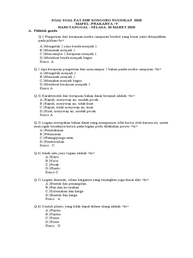 Soal Uas Prakarya Kelas 8 Kerajinan. Latihan Soal UAS PAS Prakarya Kelas 8 SMP MTs Semester 1 Ganjil Tahun 2020 - 2021 by Ayunara Bahar on 11132020 022900 PM in PAS Prakarya PAS prakarya kelas 8 semester 1 PAS SMP Soal PAS UAS PAS. He did not know which one he should appoint as.