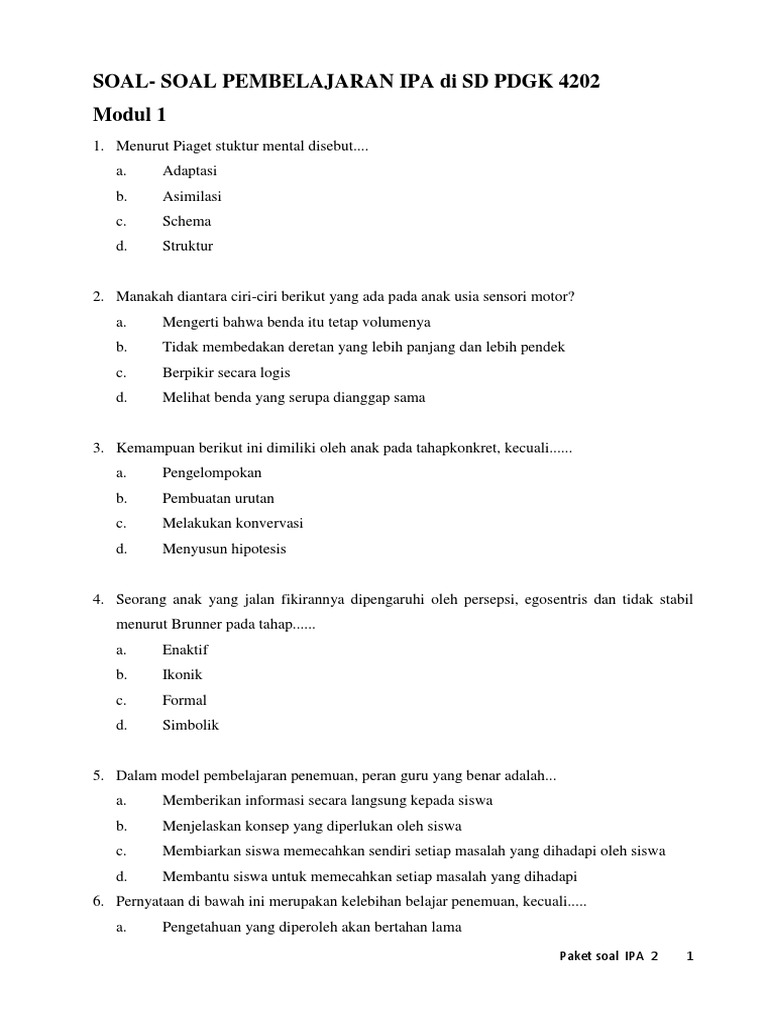 Soal Ujian UT PGSD PDGK4405 Materi dan Pembelajaran IPS SD Lengkap dengan Kunci Jawabannya. Soal ujian ut pgsd pdgk4405 materi dan pembelajaran ips sd soal ut ini sangat simple sekali dan mudah untuk di pelajari karena dalam hal ini kami tidak memisahkan antara soal dan jawabannya. Mengidentifikasi model model pembelajaran ipa di sd d.