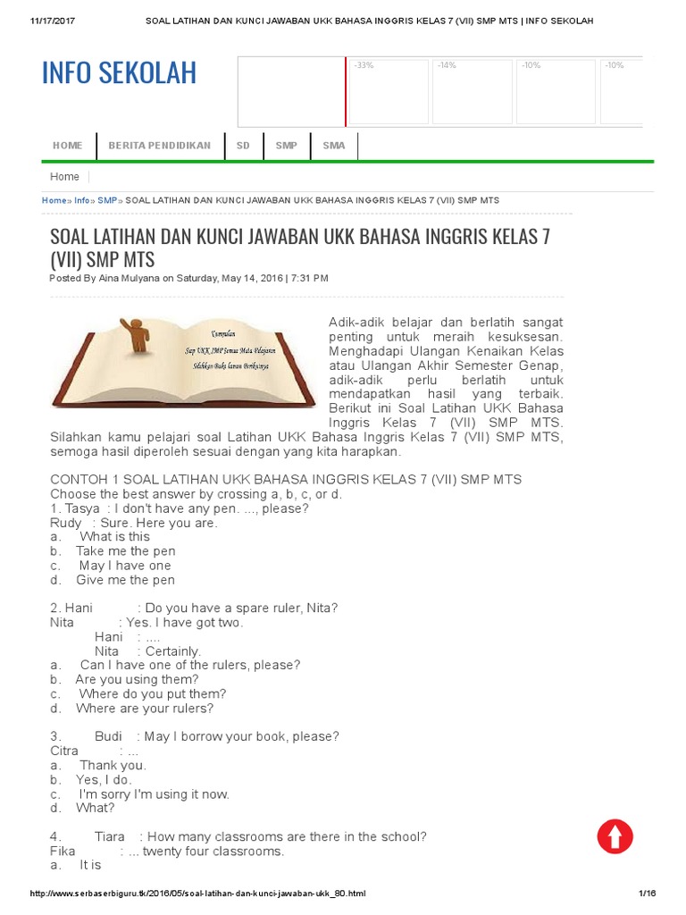 Basa kasar dipake keur sahandapeun abdi neda pun bapa tuang abdi maca. Berikut ini adalah Soal UTS Bahasa Inggris SMP Kelas 7 Semester Genap TA 20172018 beserta kunci jawabannya yang bisa di download secara mudah dan gratis. Dengan banyaknya referensi soal yang didapatkan oleh peserta didik diharapkan peserta didik menjadi lebih siap dalam menghadapi evaluasi UKK Semester 2. Kumpulan Soal UTSUASUKK Bahasa Indonesia Kelas 7 SMPMTs Terbaru dan Terupdate - Adik adik dimanapun berada nah pada kesempatan yang baik ini kakak ingin berbagi beberapa contoh soal Ulangan Tengah Semester Ulangan Akhir Semester dan Ulangan Kenaikan Kelas yang disusun pada mata pelajaran Bahasa Indonesia kelas 7 SMPMTs.