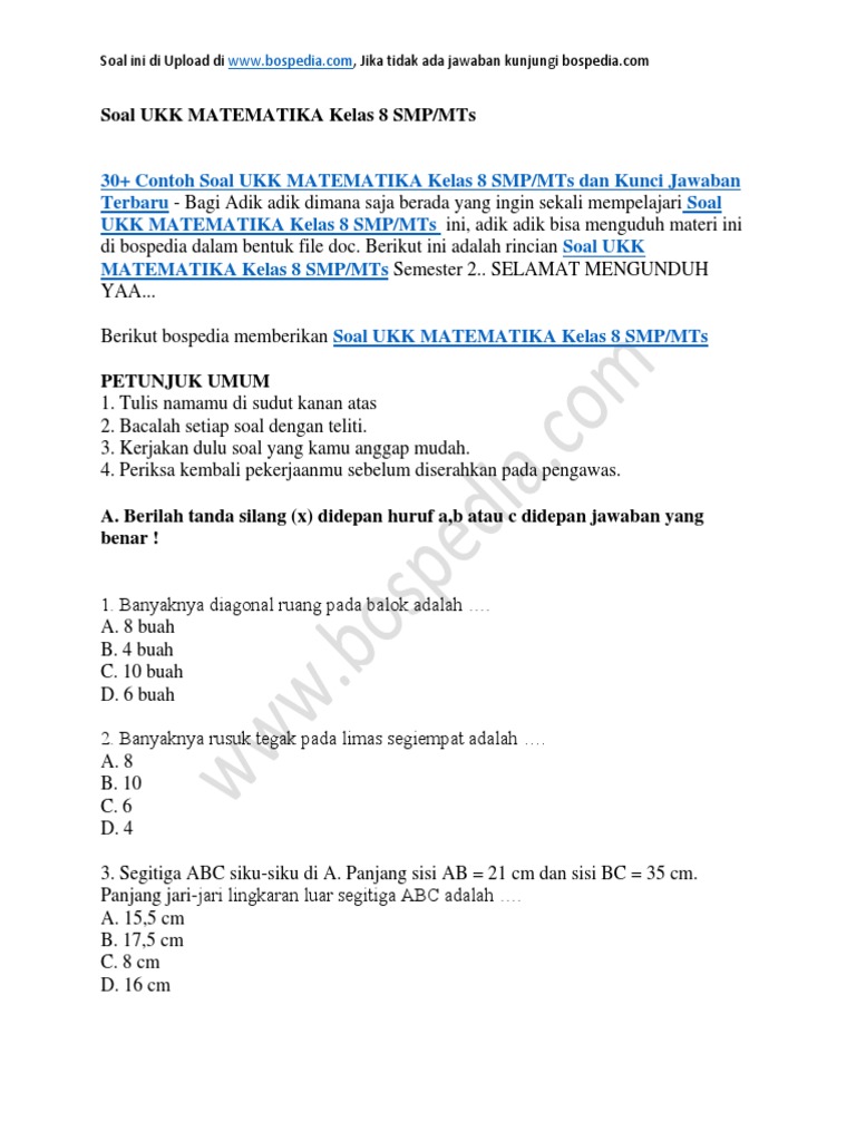 Soal Ukk Mat Kelas 8.doc. Soal UAS UKK PKn SMP MTs Kelas 7 8 Lengkap dengan Kunci Jawaban 3 6 101 Soal UAS SKI Kelas 7 8 Kurikulum 2013 Lengkap 1 20 Soal UAS SKI Kelas 7 8 Kurikulum 2013 Lengkap dengan Kunci Jawaban uas 1 SKI 8. ULANGAN KENAIKAN KELAS UKK SEKOLAH MENENGAH PERTAMA SMP KABUPATEN BANYUWANGI TAHUN PELAJARAN 20162017 MATA.