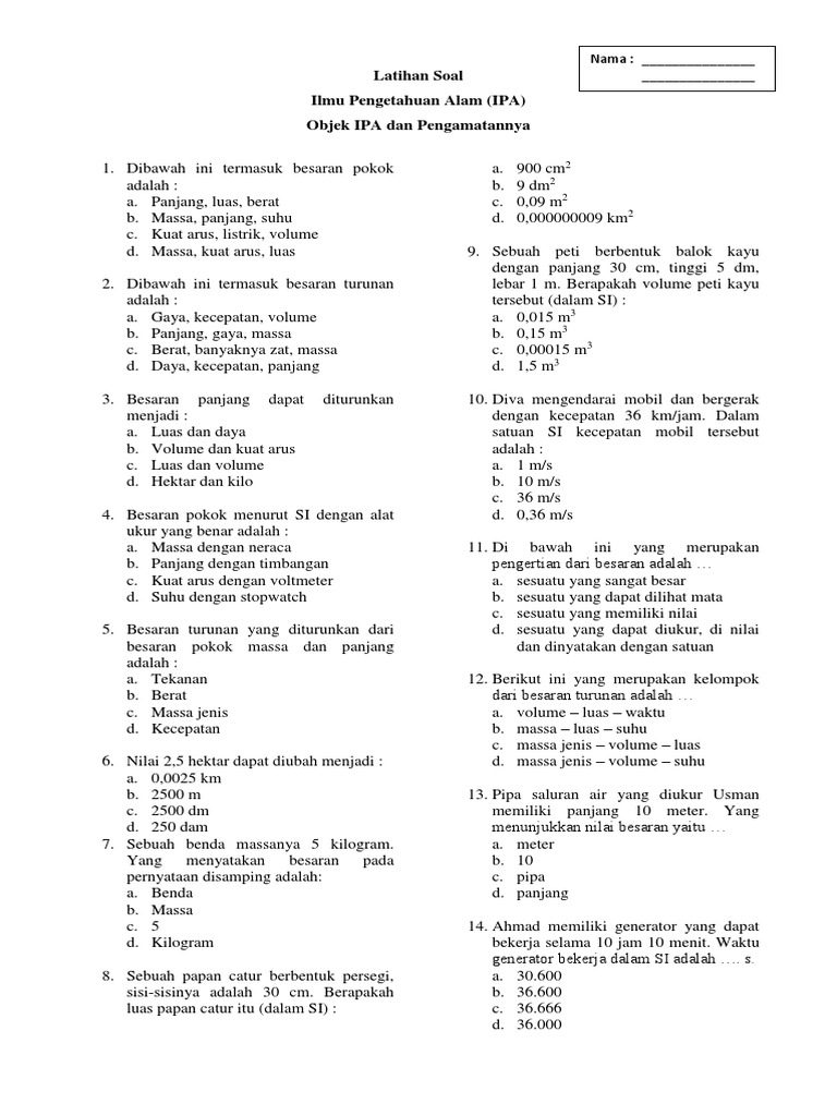 Soal Ulangan Bab 1 Obyek Ipa Dan Pengamatannya. Jawaban a dan c salah karena kecepatan bukan besaran. Soal hots objek ipa dan pengamatannyaContoh soal ulangan.