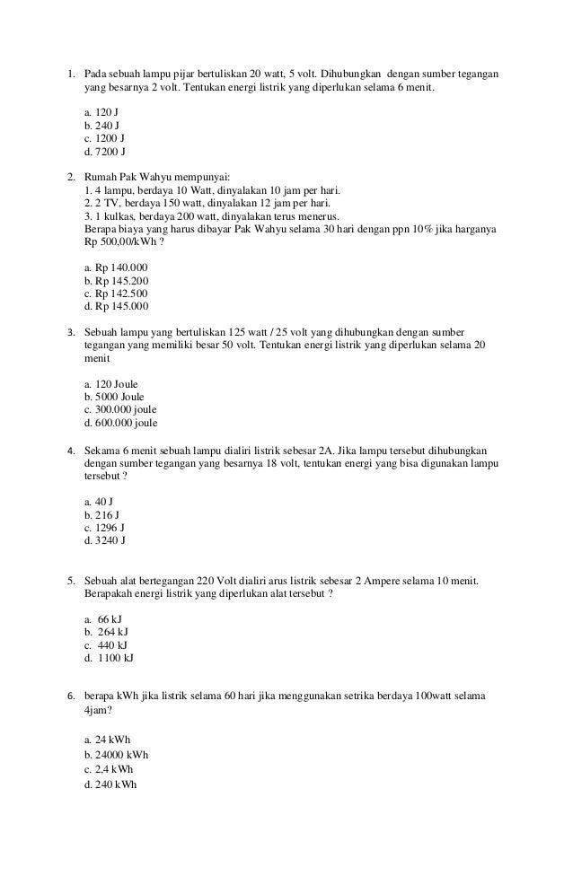 Contoh Soal dan PembahasanSOAL UN IPA FISIKA SMP 2016 Suatu keluarga menggunakan energi listrik dalam sebulan 30 hari untuk alat-alat seperti pada tabel berikut. Latihan soal IPA ini untuk membantu belajar peserta didik kelas 8 SMPMTs dalam memahami materi Energi dan Usaha. 600 ma 5. Energi Listrik dan Daya Listrik Pelajaran IPA SMP MTs Kelas IX Dengan kita mempelajari hal ini diharapkan akan dapat lebih mengatahui kaitannya antara energi dan daya listrik selain itu juga pemanfaatan listrik untuk kehidupan sehari-hari.